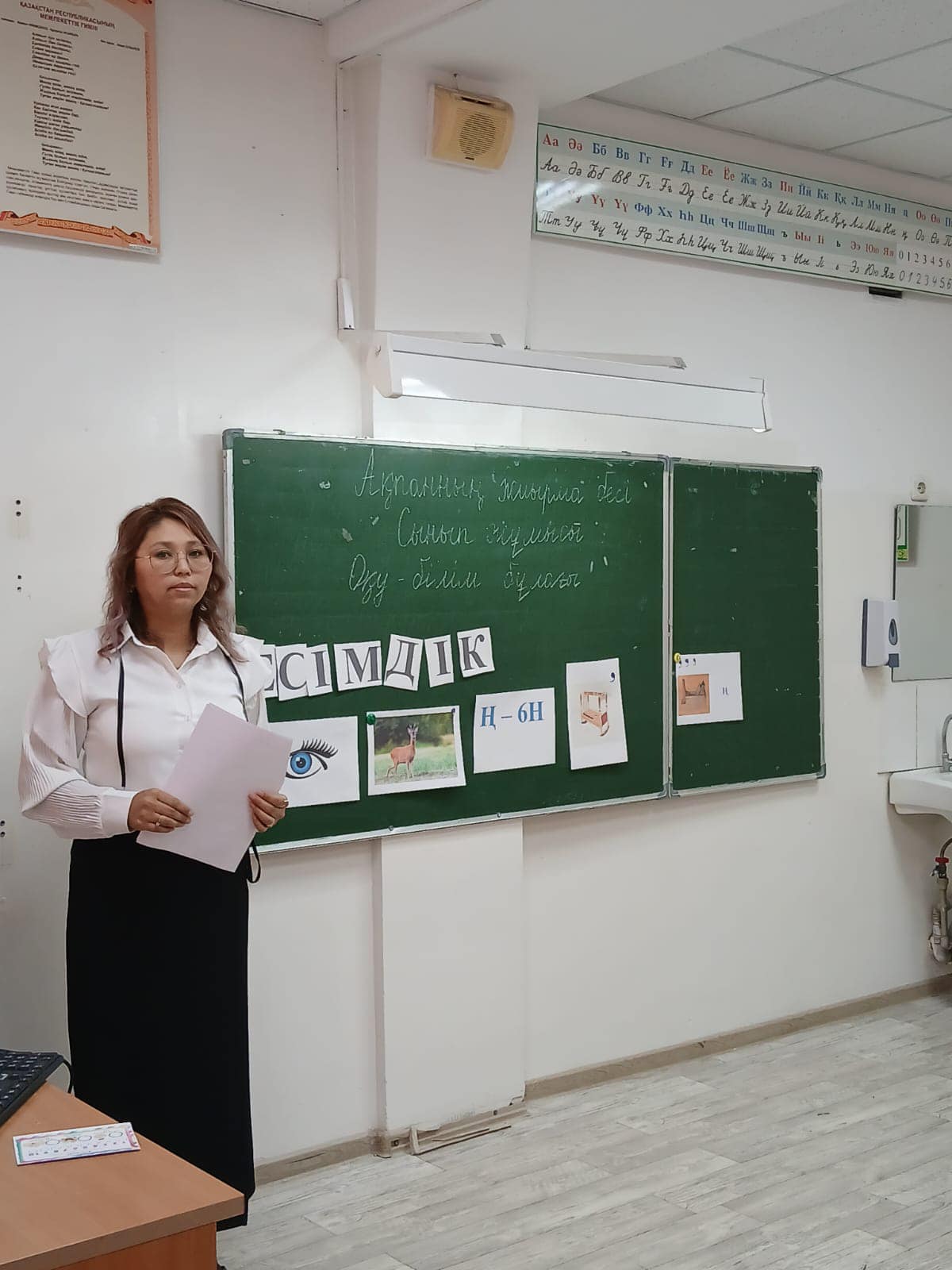 "Бастауышым бастамам, білім жолын бастаған" атты тақырыбындағы бастауыш пәндері бірлестігі онкүндігінің жоспарына сәйкес 4 “А” сыныбының сынып жетекшісі С.Туралбаева Қазақ тілі пәнінен "Есімдік" тақырыбында ашық сабақ өткізді.