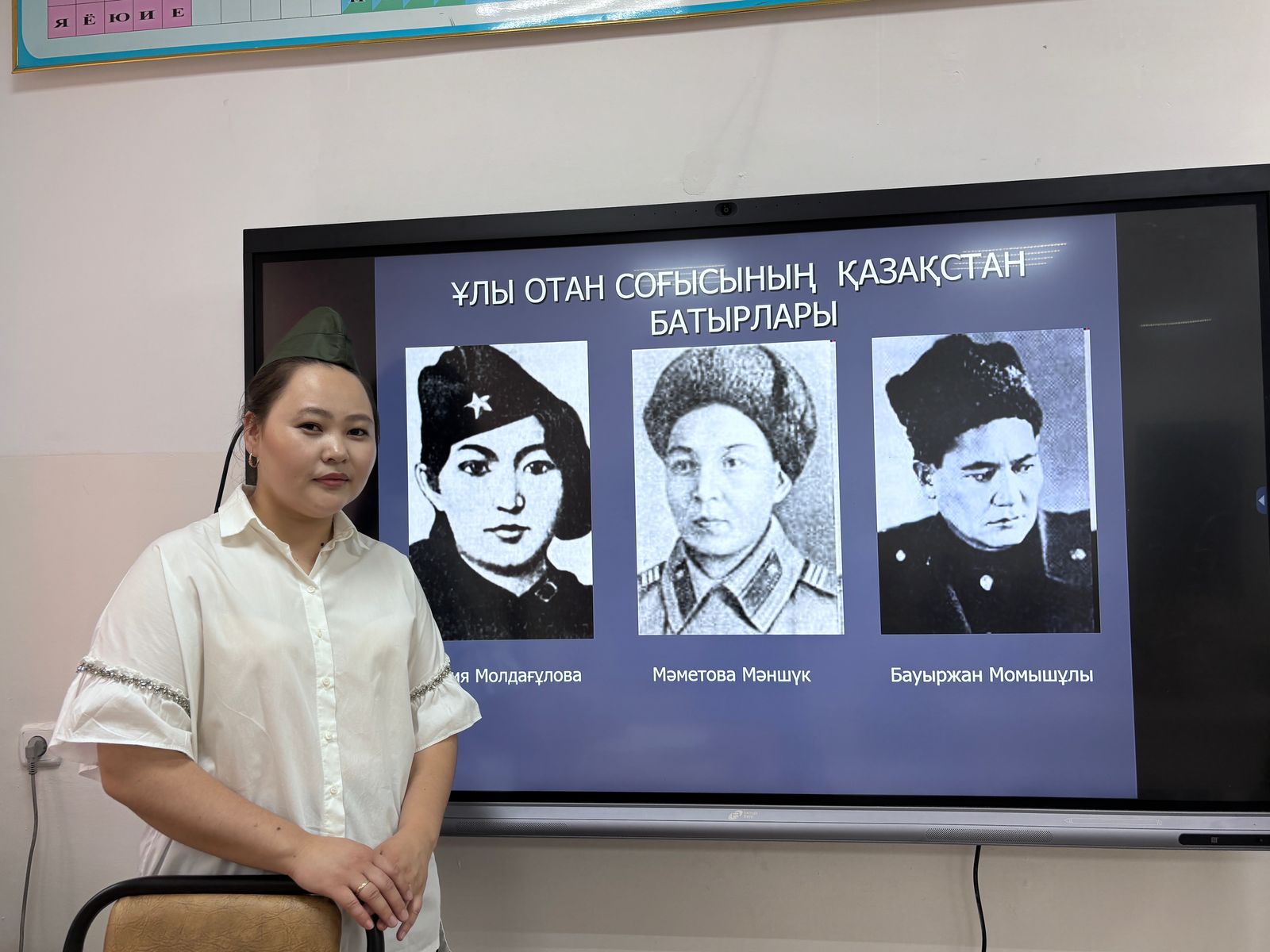 Ұлы Жеңістің 80 жылдығына орай кітапханашы Г.Какенова "Ұлы Жеңіске 80 жыл" атты кітап көрмесін ұйымдастырды. Мақсаты: ұлтымыздың болашағы үшін қан мен тер төккен батыр бабаларымызды ұмытпау, олардың аманатын өскелең ұрпаққа жеткізу.