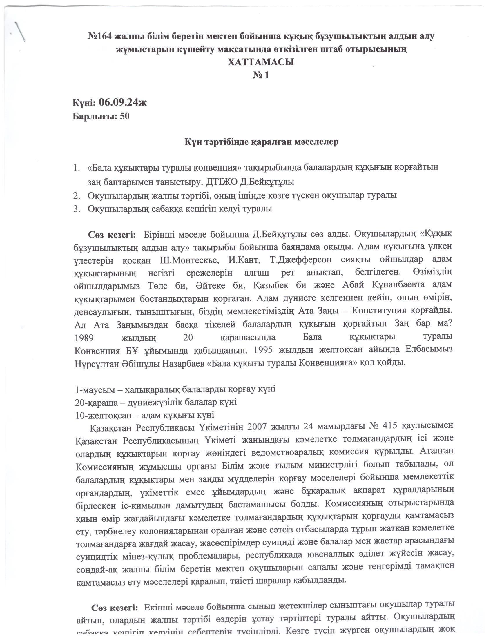 06 қыркүйек 2024 0 1 2 3 4 5 29. Құқық бұзушылықтардың алдын алу жөніндегі Штаб жұмысы , қабылданған шешімдердің орындалуы. Осы беттің QR-коды:QR-код этой страницы: