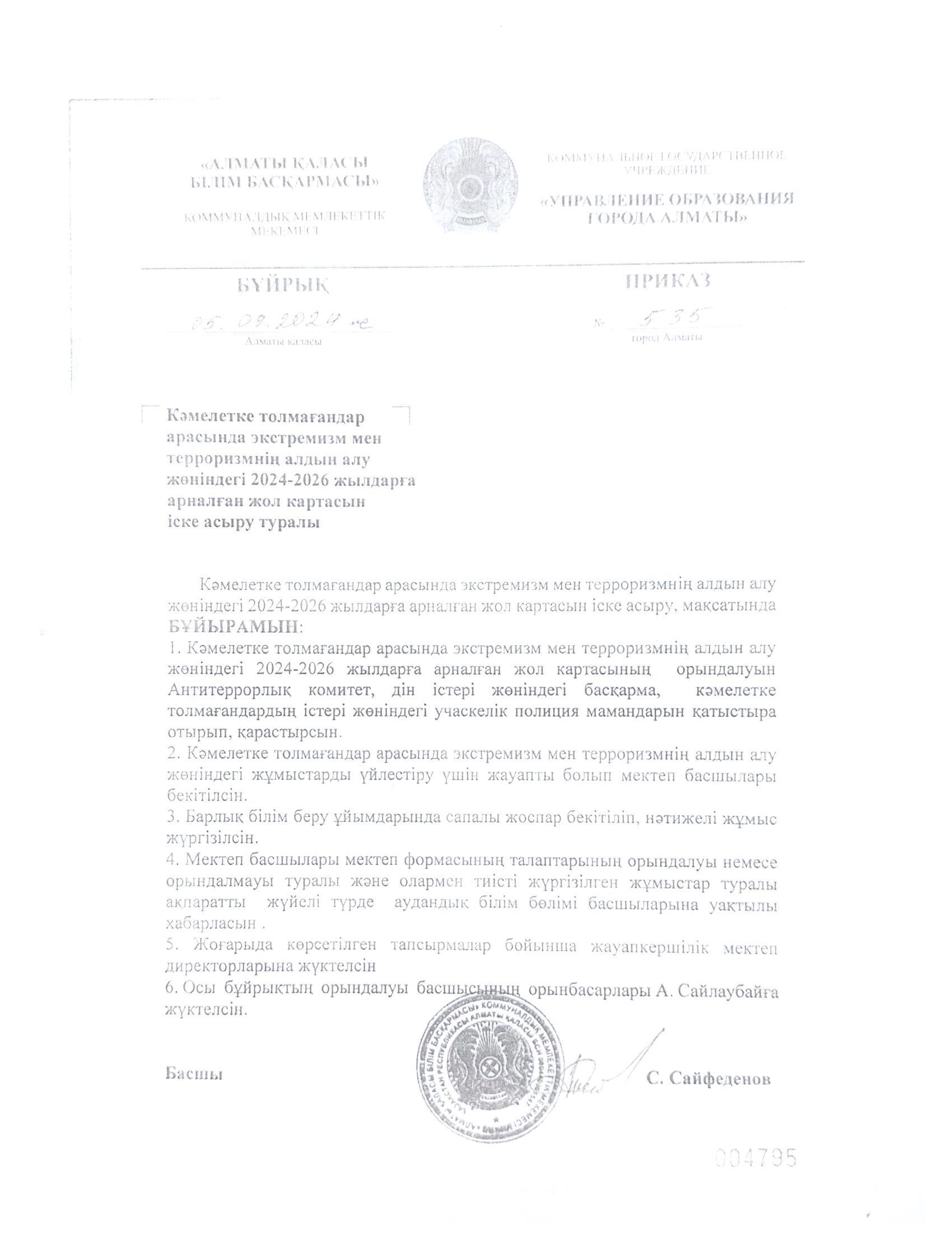 12 мамыр 2025 0 1 2 3 4 5 Діни экстремизмнің, діни сипаттағы киімдерді киюдің алдын алу бойынша білім басқармасының 2024-2026 жылға арналған жол картасының бұйрығы Осы беттің QR-коды:QR-код этой страницы: