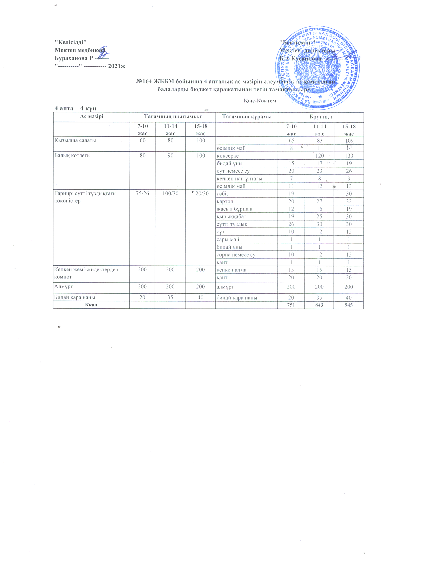 Меню лето -осень на 2019 год