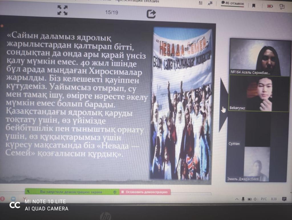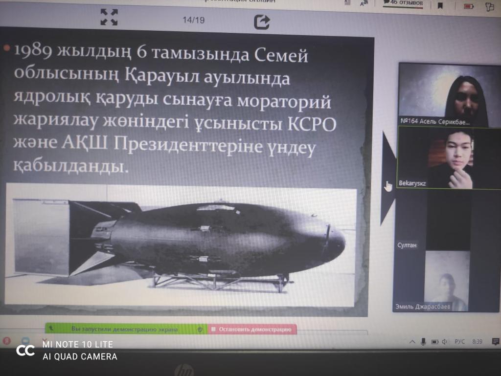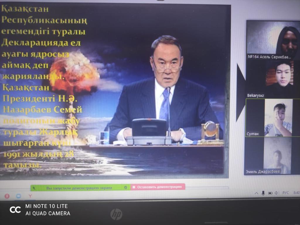 №164 Жалпы білім беретін мектеп » Ақпарат » Бүгін мектебімізде Семей ядролық полигоны жабылуына 30 жыл болуына байланысты 5-11 сыныптар арасында сынып сағаттары және тарихқа шолу сабақтары өтілді.