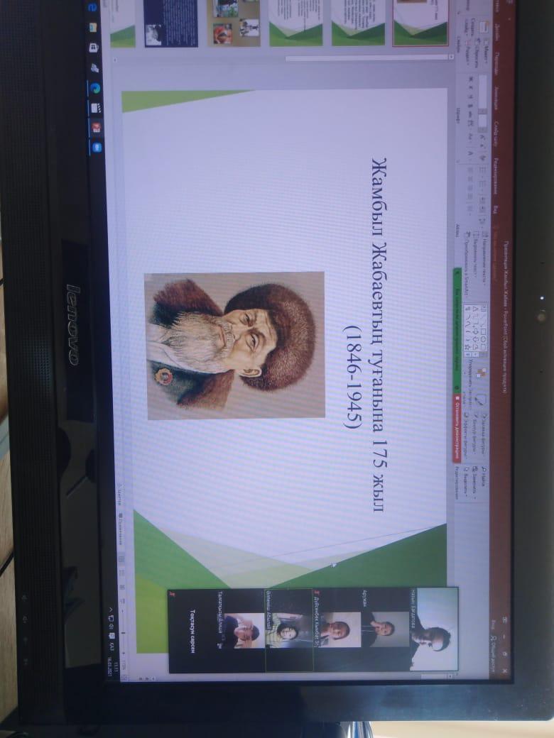 Биыл жыр алыбы Жамбыл Жабаевтың туғанына 175 жыл, сонымен бірге Тәуелсіздіктің 30 жылдығына орай мектебіміздің директордың тәрбие ісі жөніндегі орынбасары Н.А.Бағдатова 5- сынып оқушыларына Жамбыл Жабаев туралы слайд көрсетіп, мұражайымен таныстырды