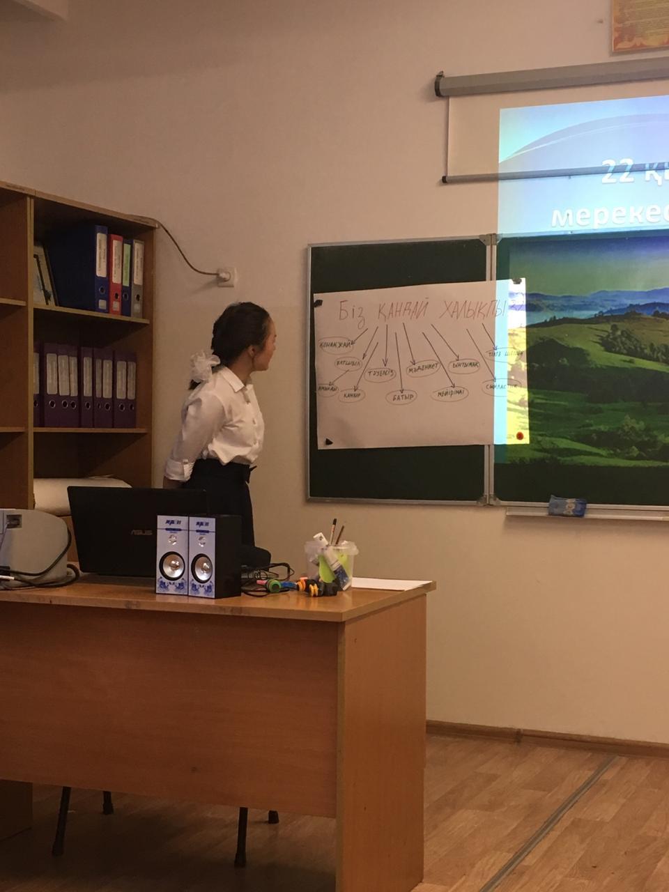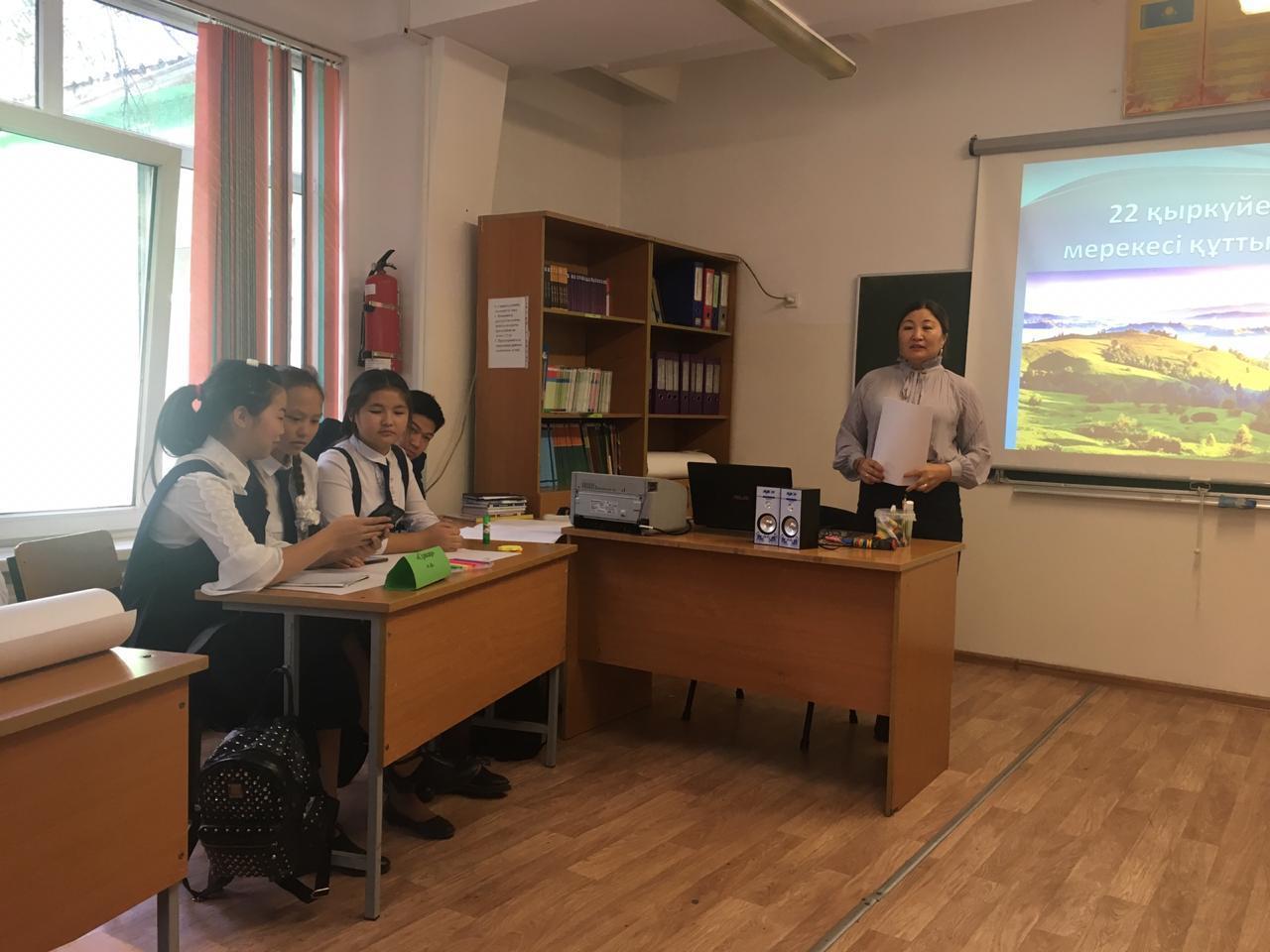Тіл мерекесінің онкүндігіне Қазақ тілі мен әдебиет пәні мұғалімі Л.Т.Сарсембина 9- сынып оқушылары мен "Үздік әдебиетшілер" сайысын өткізді. Әдебиетшілер сайысының жеңімпаздары 9 "В" сынып оқушыларының "Сұңқар" тобы.