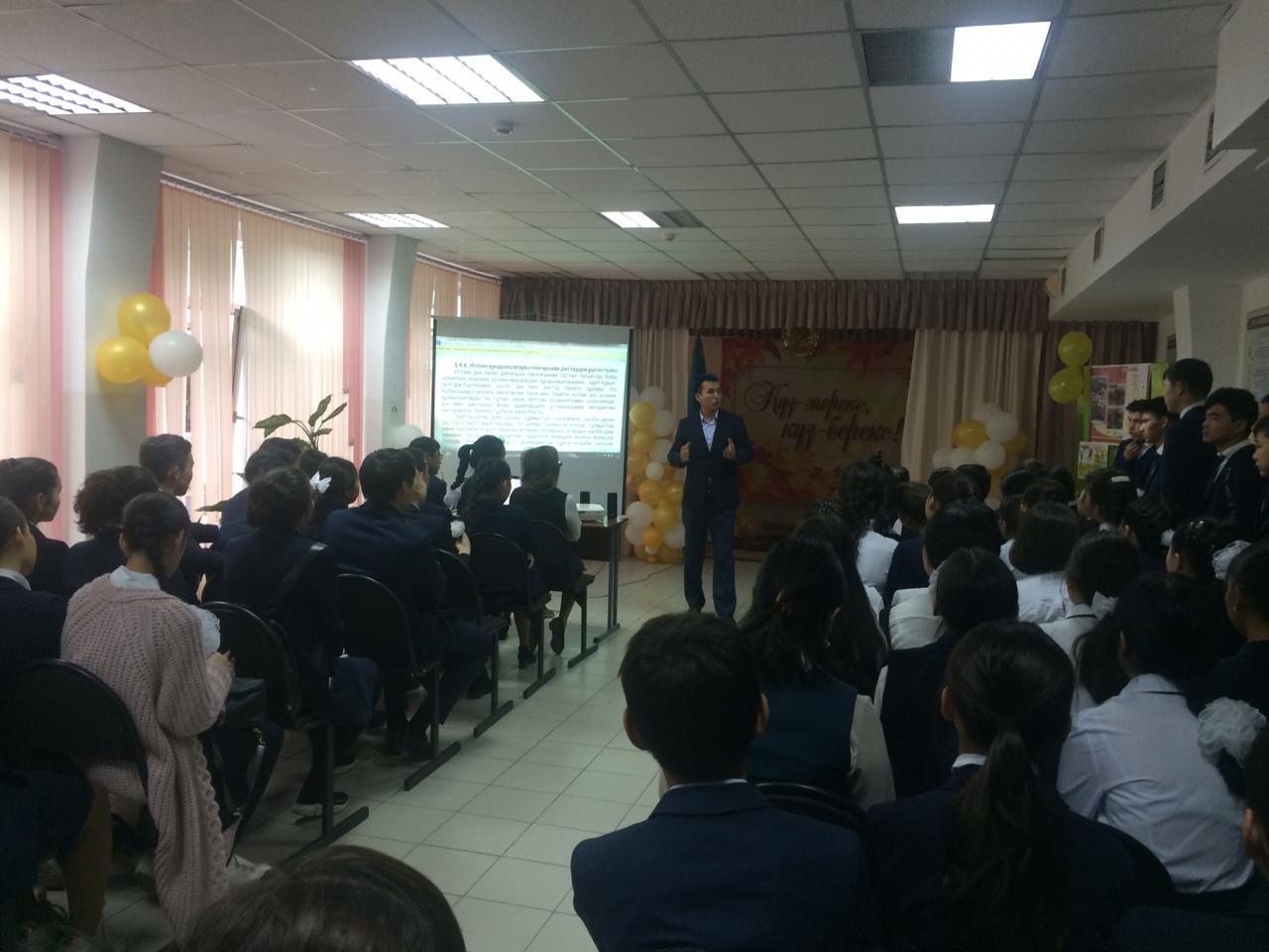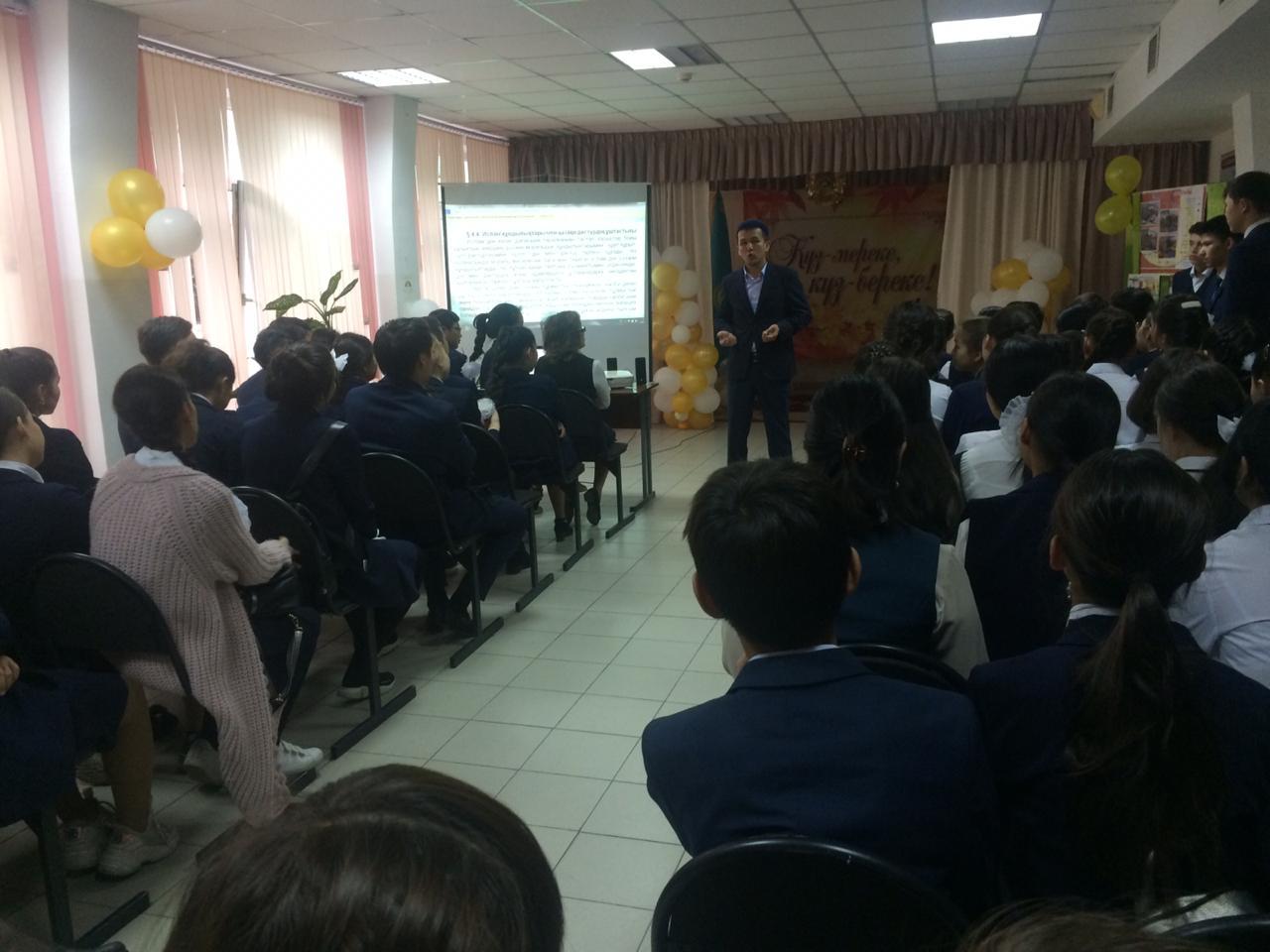 15 қазан күні мектебімізде "Жат ағымдардың алу шаралары" тақырыбында АТТ мүшесі Рахимгазиев Жайдар Турганбекович 9-11 сынып оқушыларымен кездесу өткізді.