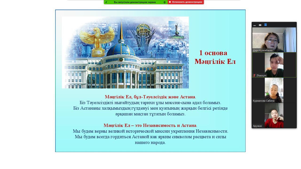15 желтоқсан 2020 0 1 2 3 4 5 15-желтоқсан 2020 жылы мектебімізде «Мәңгілік ел – біздің күш қуатымыз» атты 1-11 сыныптар арасында онлайн сынып сағаттары өткізілді. Осы беттің QR-коды:QR-код этой страницы: