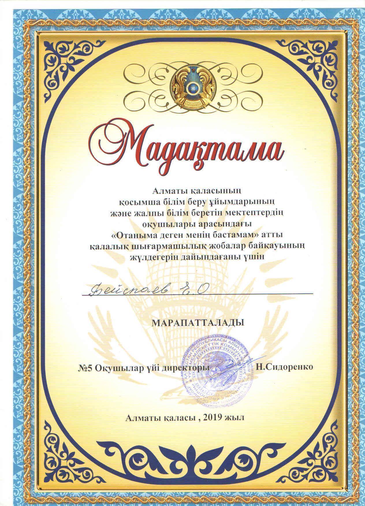 Болашаққа бағдар:Рухани жаңғыру бағдарламасы негізінде "Отаныма деген менің бастамам" атты қалалық шығармашылық жобалар байқауында мектебімізден 2 команда қатысып, өте жоғары дәрежеде жобаларын қорғап шықты.