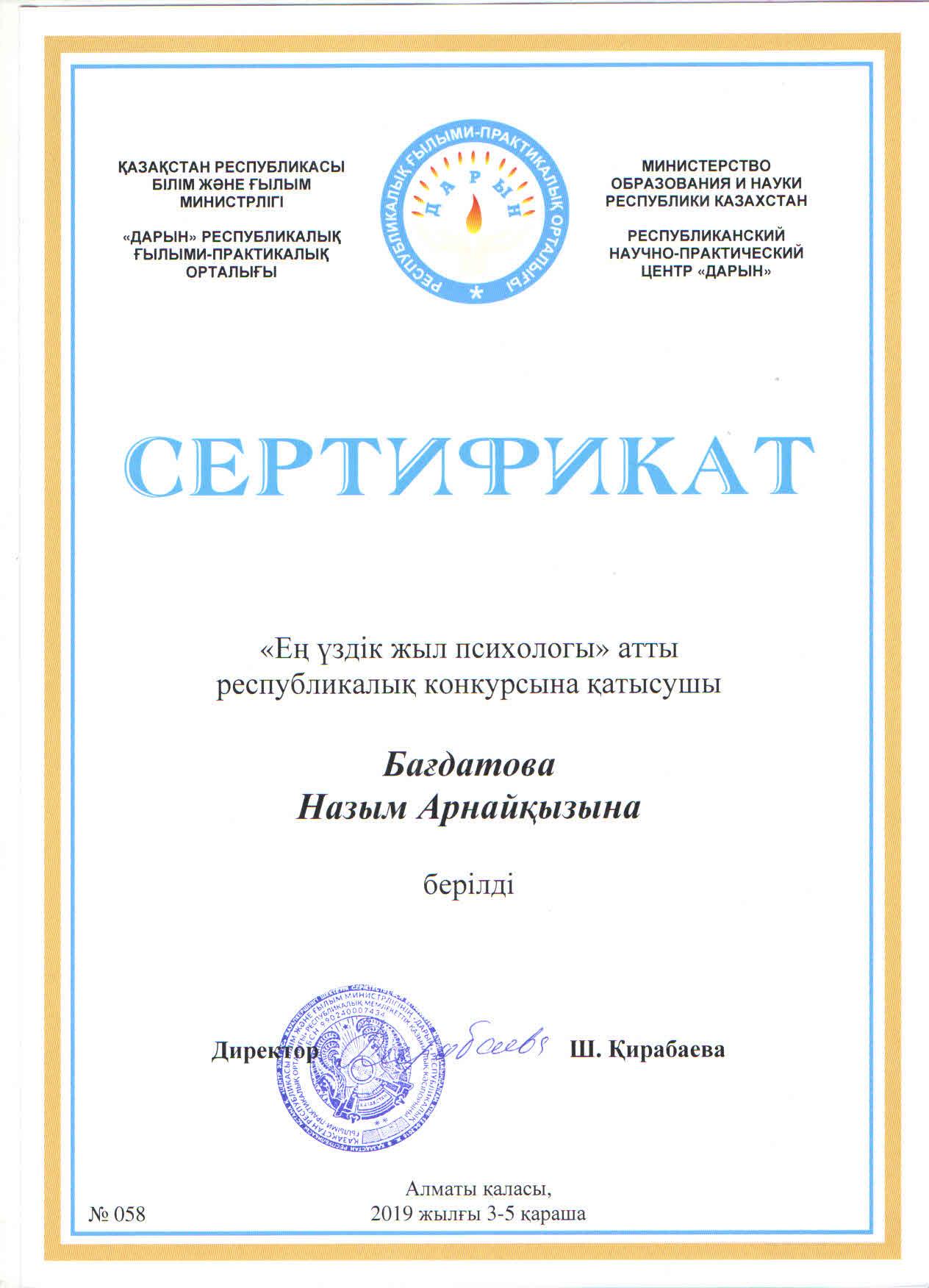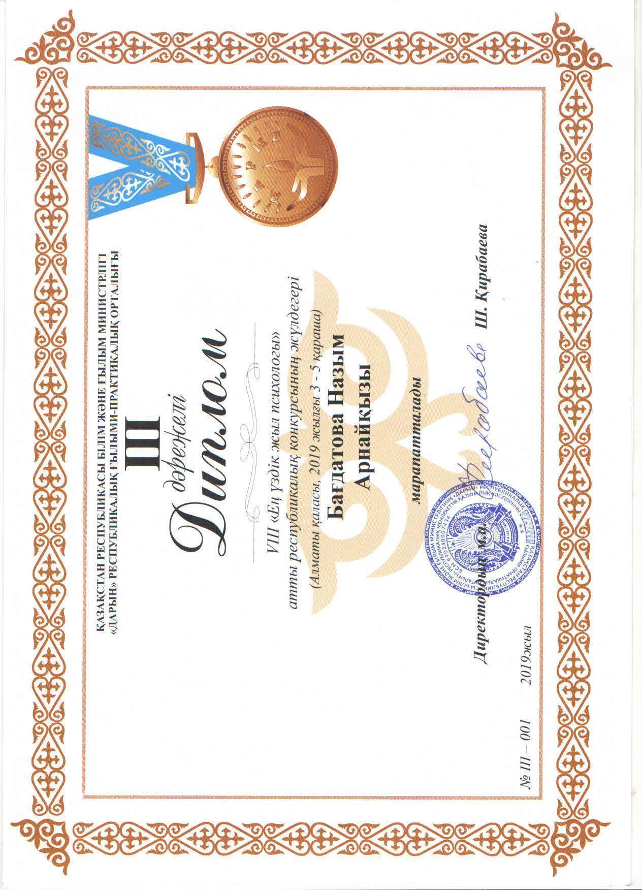 05 қараша 2019 0 1 2 3 4 5 Мектебіміздің психологы Бағдатова Назым Арнайқызы VIII "Ең үздік жыл психологы" атты республикалық конкурсқа қатысып ІІІ дәрежелі дипл Осы беттің QR-коды:QR-код этой страницы: