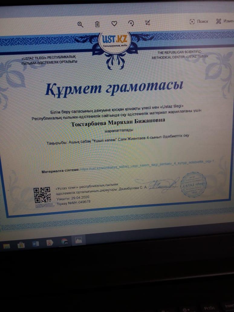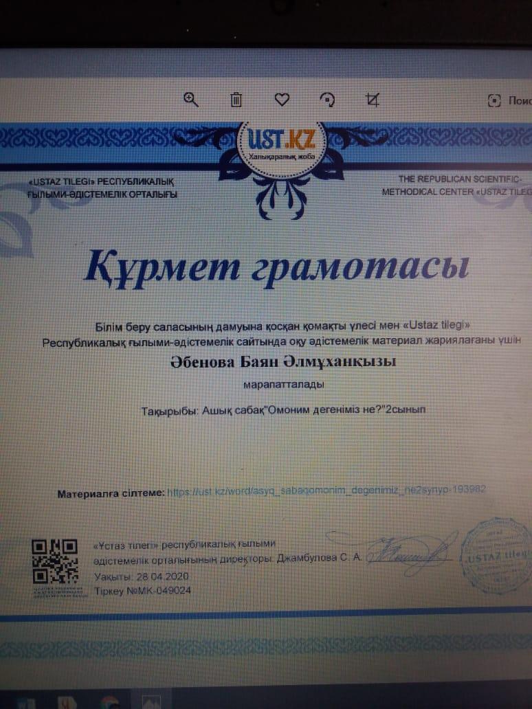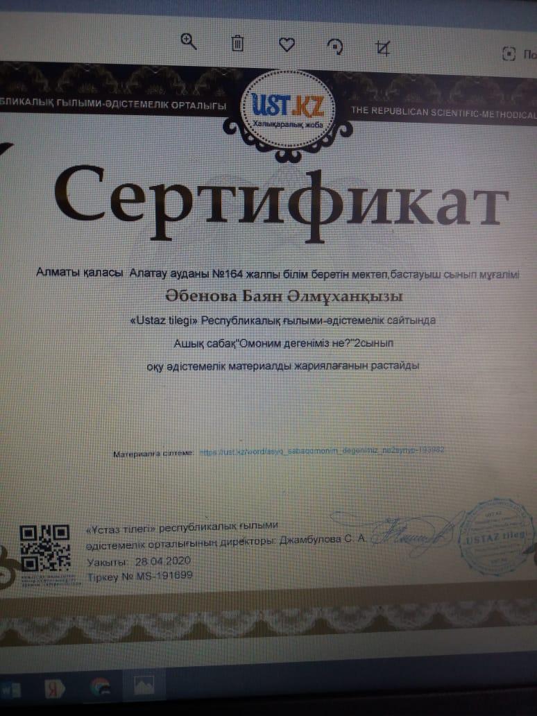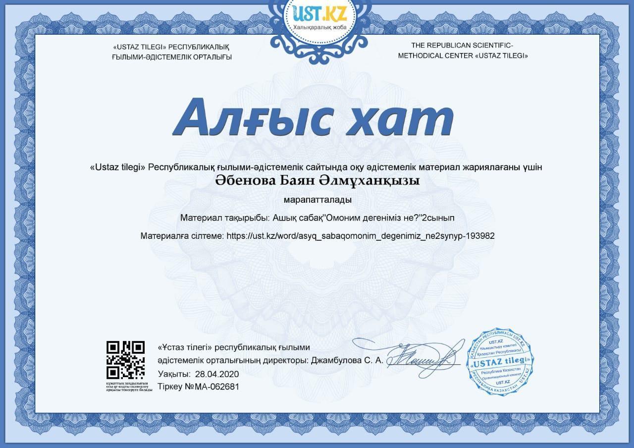 Бастауыш сынып мұғалімдері Әбенова Б.Ә, ТоқтарбаеваМ.Б, Зейтказиева М.Ж, Абуова Г.А "Ustaz tiegi" Республикалық ғылыми-әдістемелік сайтына материал жариялап, Сертификат, Алғыс хат, Құрмет грамоталарына ие болды.