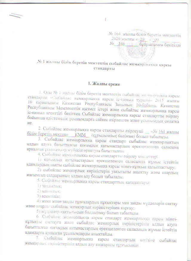 29 қыркүйек 2020 0 1 2 3 4 5 "Сыбайлас жемқорлыққа қарсы стандартты бекіту туралы" бұйрық пен №164 ЖББ мектептің сыбайлас жемқорлыққа қарсы стандарты Осы беттің QR-коды:QR-код этой страницы: