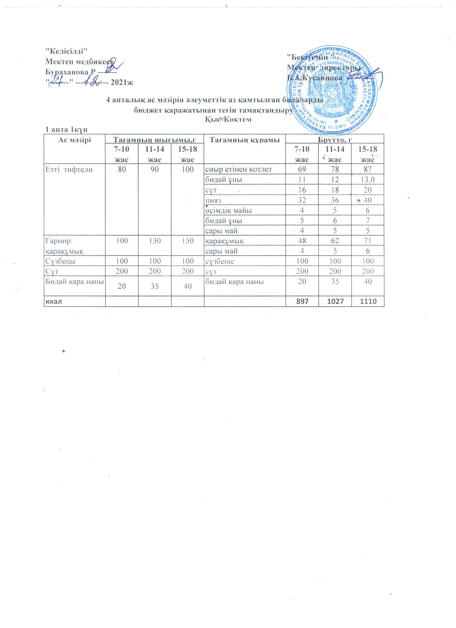 Төрт апталық ас мәзірі